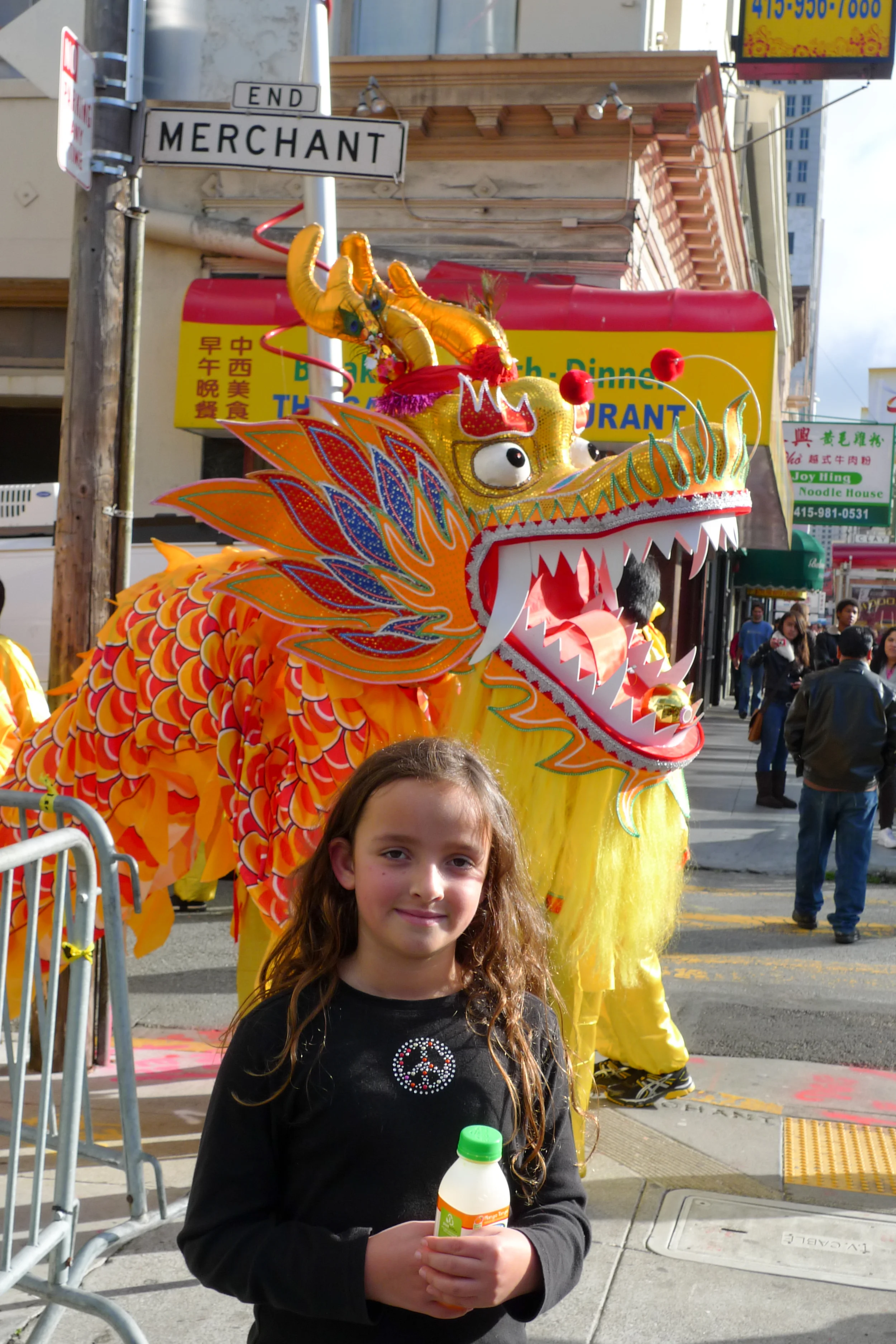 The parade starts at 5:20pm at Second and Market. We stand on the corner outside the Chinese Culture Center about 5:30pm. The kids are always excited to see the dragons, moon-faced monks, and lion dancer.