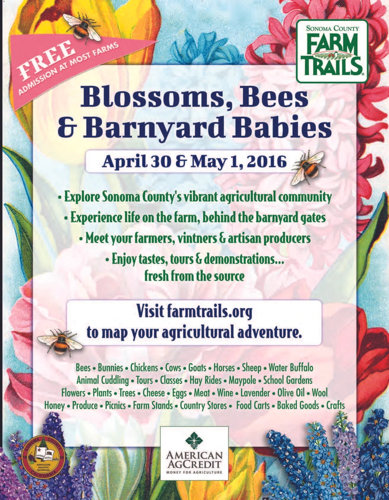 Sonoma County farms are abundant with seedlings and barnyard babies. Pack up the family and head out to the farm to celebrate Spring and see what's flowering! Tour your way through Sonoma County and visit farms of your choice. Activities include farm tours, demonstrations, animal petting, games and crafts for kids, tastings, cooking demos, flower arranging, and more. Many stops will offer snacks, lunches and epic picnic sites. Farm stands will be open for fresh-from-the-source purchases.