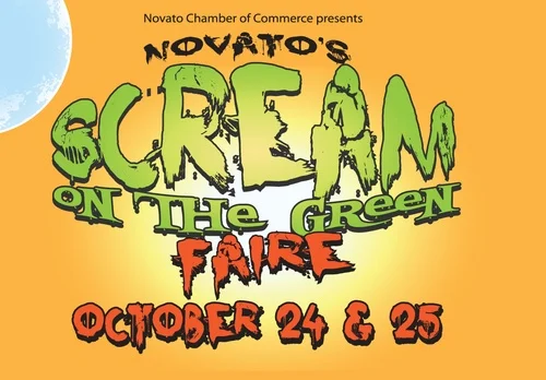 Scream on the Green Faire, Saturday, October 24th 10 a.m.to 5 p.m. & Sunday October 25th 10 a.m. to 4 p.m. "Chamber of Horrors" Haunted House. Other festivities include a Costume Contest, Music, Artisan Booths, Children's Play Area, Food & Beverages, Sherman Avenue and the Civic Green complex, Novato.