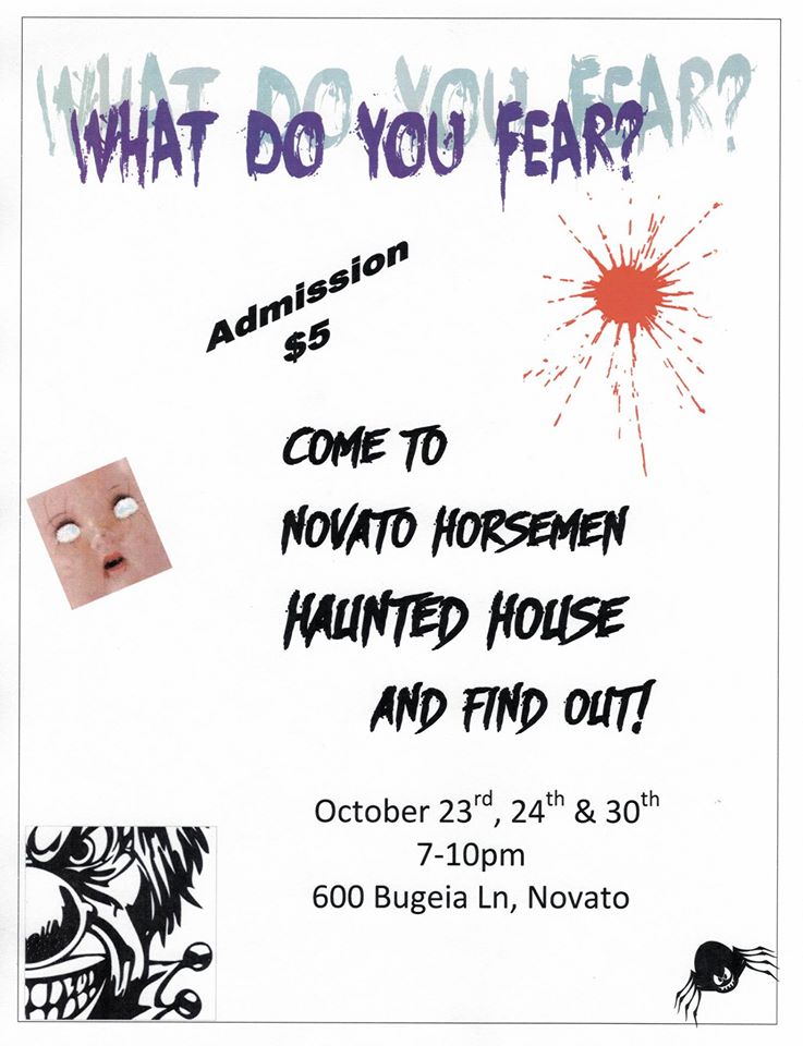 Novato Horsemen Haunted House, October 23, 24 and 30 on 600 Bugeia Lane in Novato.