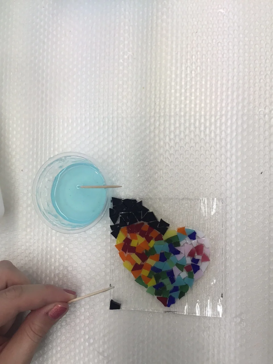 GLUE YOUR DECORATIVE GLASS TO YOUR GLASS FOUNDATION - ELMERS BLUE GEL GLUE