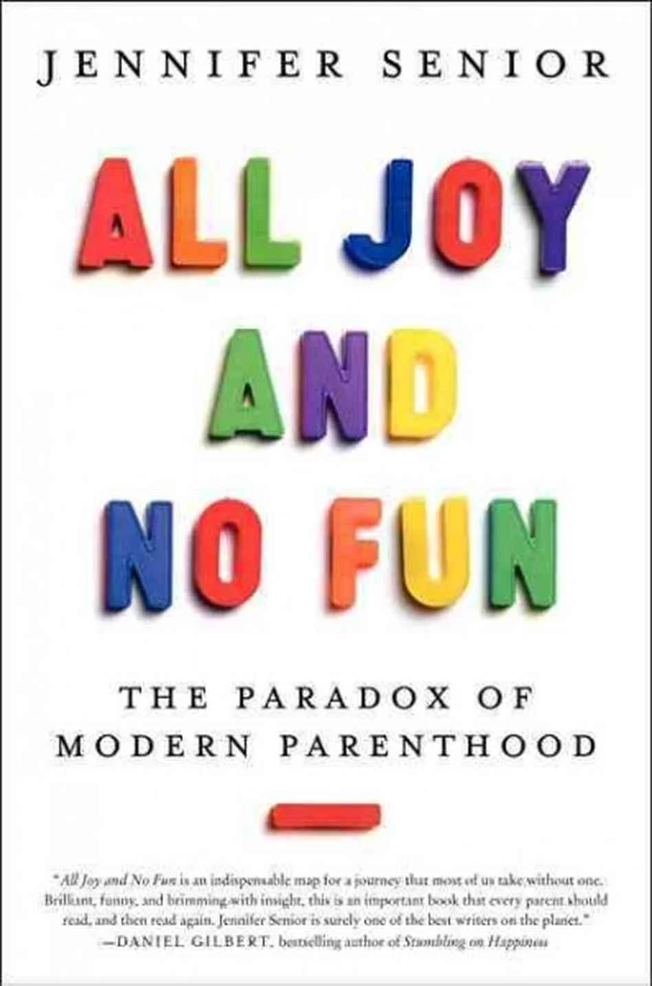 It began in 2006 with my first social science story for New York Magazine. My research took me to Dan Gilbert's book, “Stumbling on Happiness.” Towards the end of Dan’s book, he mentions that the social science is clear; kids do not improve their parents happiness and even tend to compromise it and that parents were less happy then non-parents. These results are from many studies showing this. When I read that I thought that can’t be right. At the time, I was 36, and all I wanted in life was a child. My instinct was to write about it then and there, but, because I didn’t have a child, this would be an enormous credibility gap. I couldn’t come to the topic neutrally. Two years later, I had a baby and two years after that I still kept thinking about that body of research. Now I get it and I think it’s right and wrong. My article "All Joy and No Fun," was published in 2010. I didn’t expect the response I got. It was one of the most popular pieces from New York Magazine, being shared in a furious way through social media.