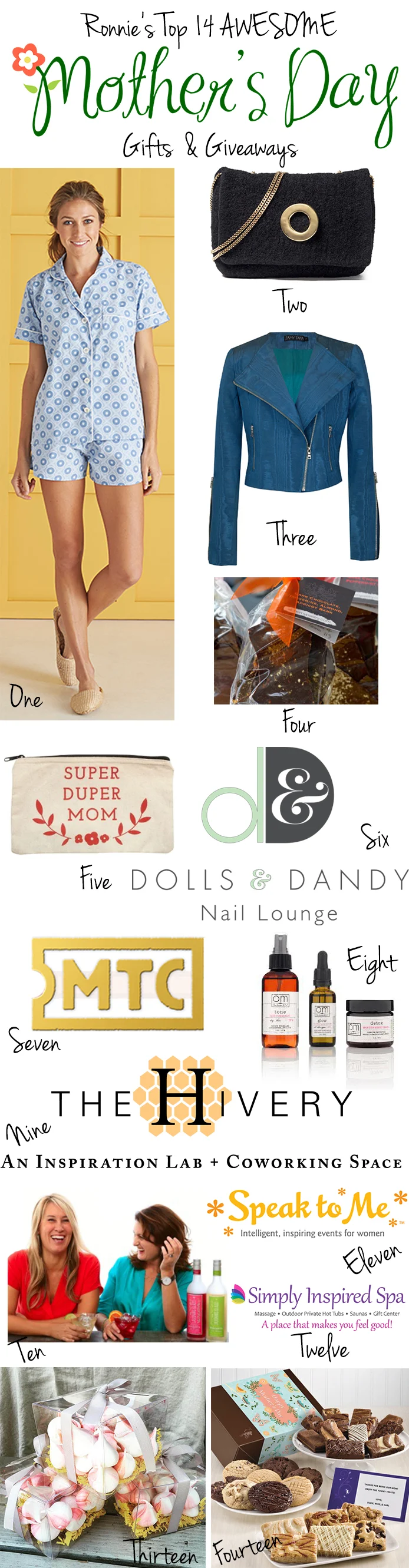 * All just in time for Mother's Day! Giveaway prize winners are randomly selected from subscribers of Ronnie's Awesome List only. Winners will be drawn and contacted directly via email on Friday, May 6th. Good luck!