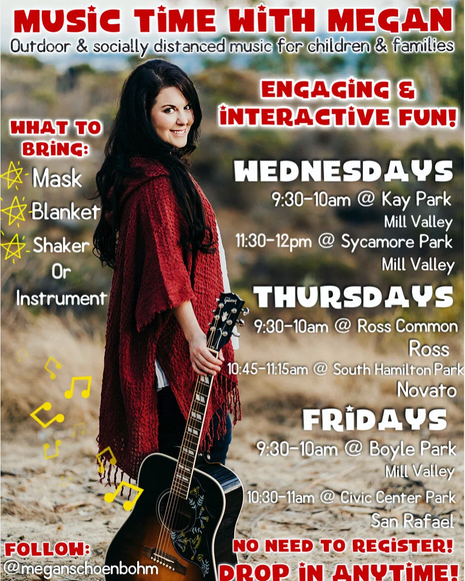 Beloved local children's musician, Megan Schoenbohm, resumes her socially distant, family-friendly music sessions! Come play with me, listen to my interview and don’t miss outdoor engaging fun with Megan Schoenbohm.