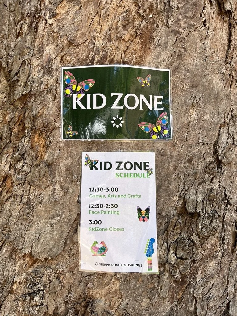 Stern Grove concerts are very Kid-Friendly. There is a Kid Zone in the East Meadow with great activities. The West meadow is a fun place to run about. There are also plenty of Geocaches in Stern Grove.