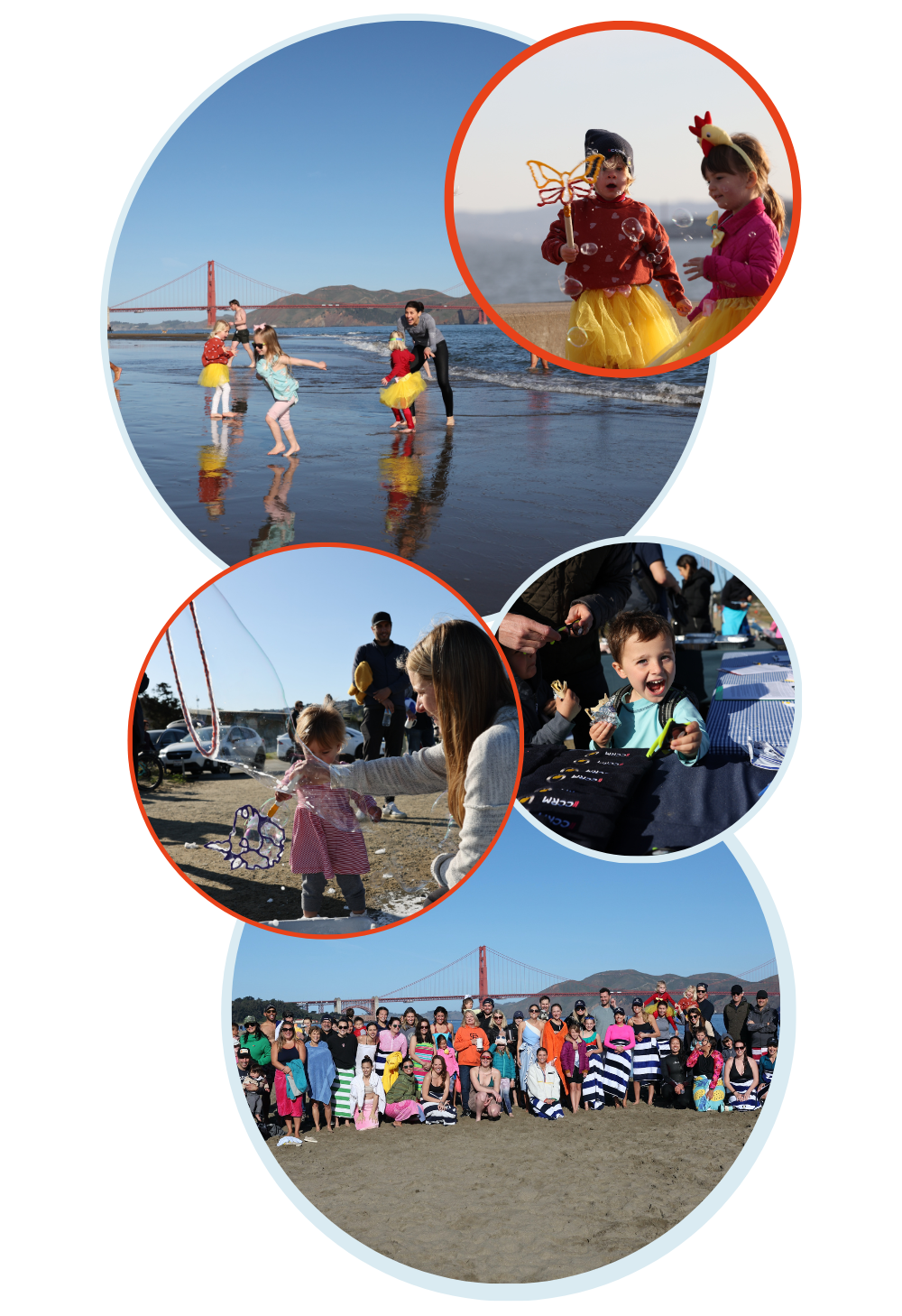 Join us for our highly anticipated, family-friendly event on Sunday, May 4 at Crissy Field. It's a perfect way to start your Sunday! We'll take a quick, chilly dip with the Golden Gate Bridge as our backdrop. Then, we'll warm up over a picnic breakfast and enjoy family-friendly activities like face painting and "The Bubble Guy." Plunge party pictures will be taken by Mini Anna Photography!