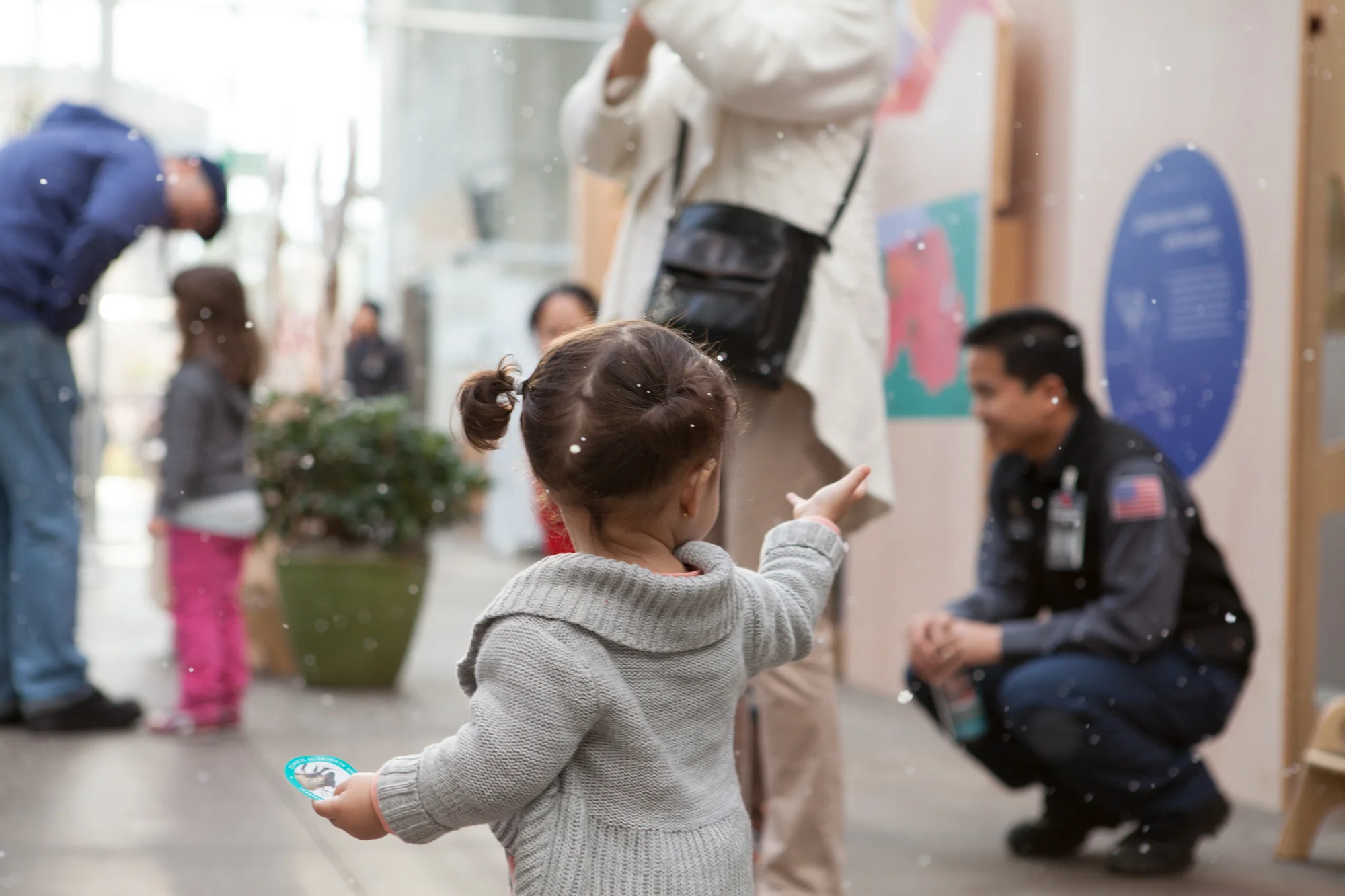 Lights of the North– and Live Snow Flurries, daily every half hour, Snowman Theater, immersive digital dome, watch this short, kid friendly show exploring the science and beauty of aurora borealis. Step outside the theater to revel in delightful indoor snow flurries.