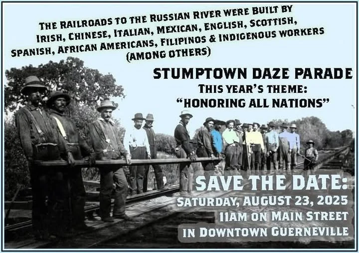 Join us on June 13th 2026 at 11am on Main Street in downtown Guerneville for the 79th Stumptown Daze Parade. We’re excited to get planning underway for this community event which brings everyone out to celebrate the rich history of the Russian River.