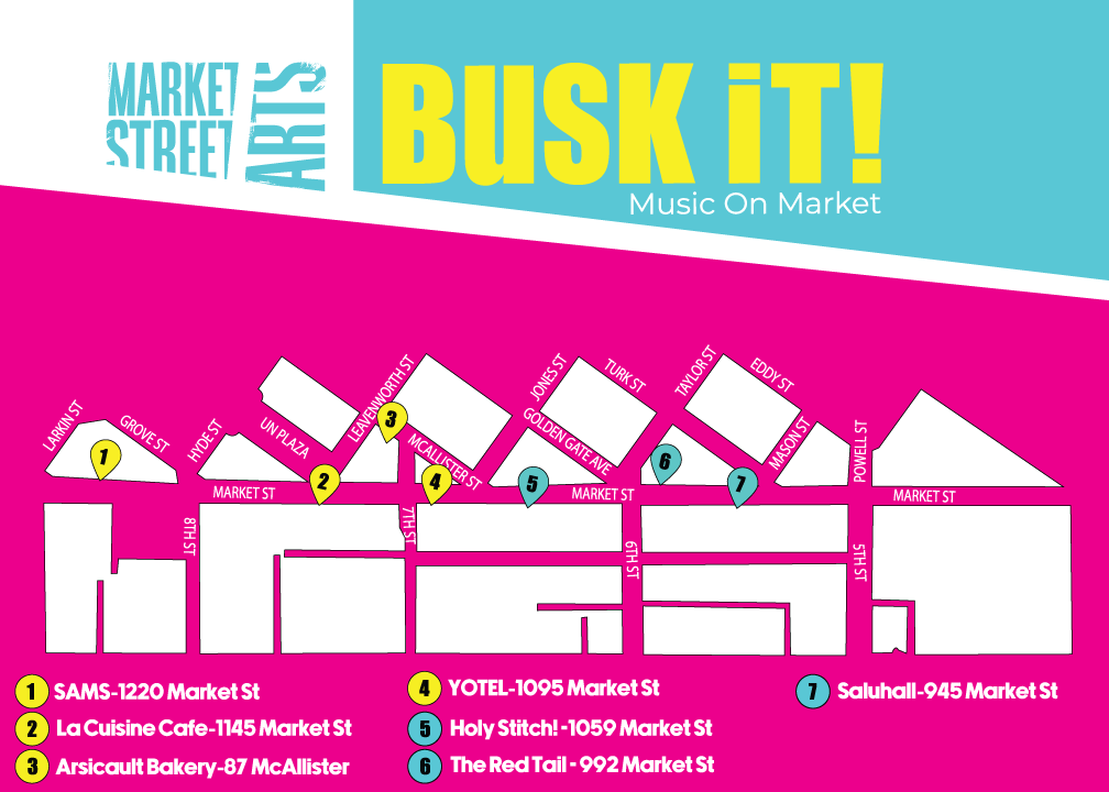Market Street Arts is bringing in live music and performance artists to Mid-Market with Busk it! Connecting local performers and businesses on Market Street’s sidewalks between 5th and 8th streets, Busk it! has returned for 2025. The program brings back last year’s faves and introduces new artists to the roster for an array of musical styles on Market Street almost every day.