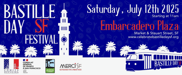 The 6th annual Bastille Day SF Festival is back at Embarcadero Plaza on Saturday, July 12th 2025! Join us for another day filled with French food, wine, beer, art, culture, and entertainment.