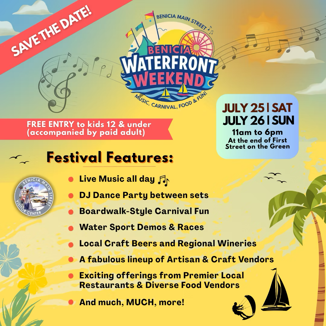 Come spend the weekend by the water as Benicia Main Street turns the historic waterfront into a lively, wind-powered festival of music, flavor, and fun for all ages.