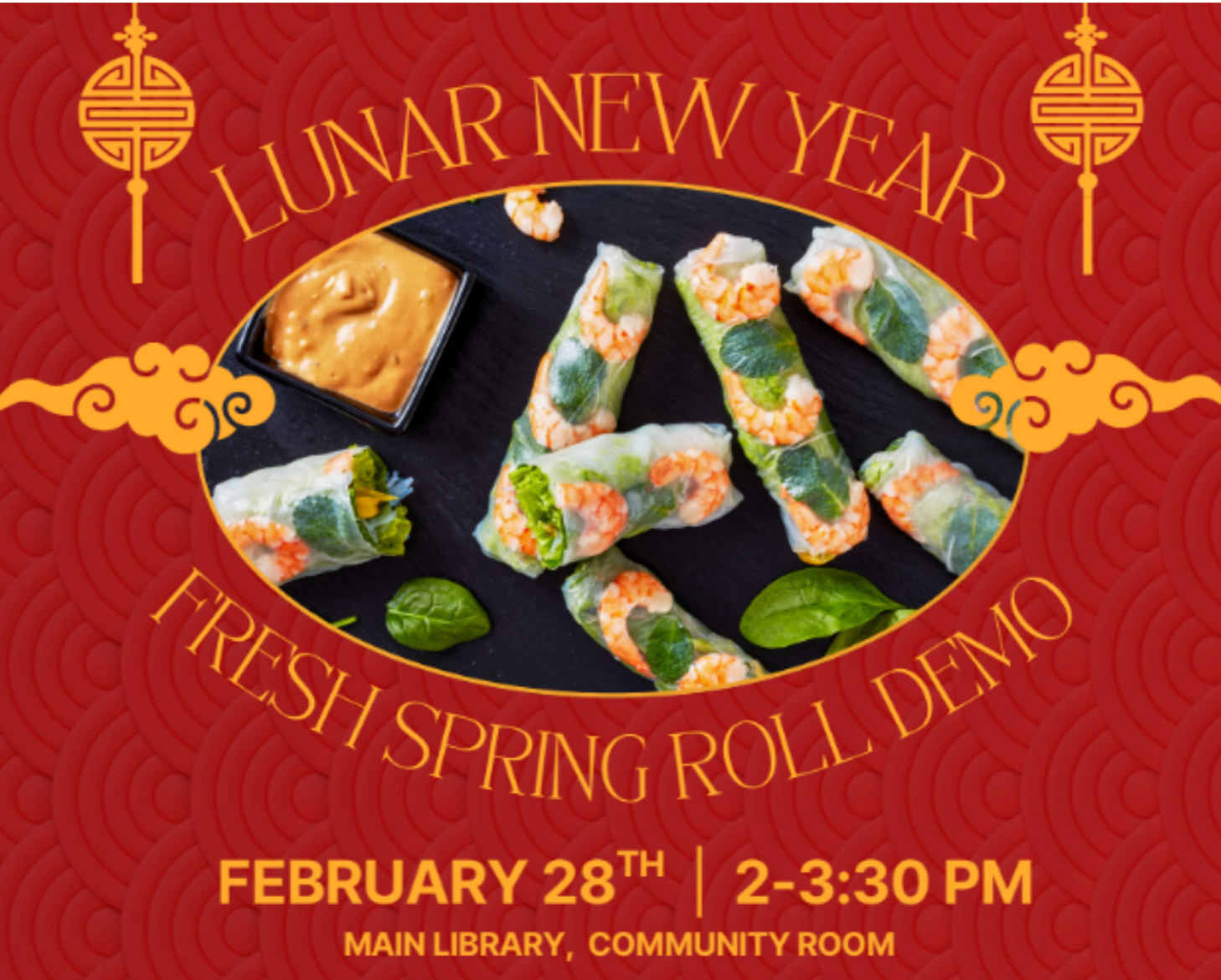Join in the fun with a fresh spring roll demonstration and the chance to customize your own dipping sauce and have a taste! Tết is a time for family gatherings and offering well wishes for the new year. Come, celebrate, and learn more about Vietnamese New Year traditions with us!