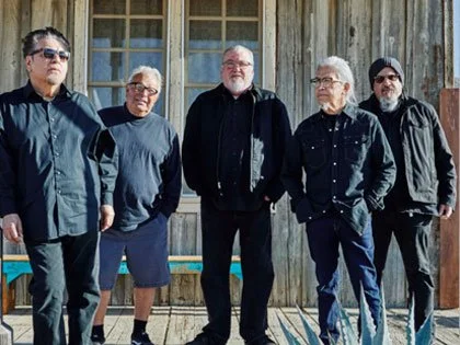 It's a matter of time. 50 years to be exact. And in that time Los Lobos have created an unprecedented body of work, a legacy of greatness. The numbers are staggering: 100+ gigs a year for five decades running, crossing millions of miles to rock millions of fans. And that's just at the live shows. In between they've recorded 17 studio albums, 7 live LPs, 3 compilations, 2 EPs, 2 DVDs, and contributed 40+ guest appearances on their friends' recordings — all garnering 5 Grammys, an Austin City Limits Hall of Fame induction, the ALMA Richie Valens Pioneer Award, NEA and Hispanic Heritage Foundation Honors, Congressional recognitions, plus countless "Keys to the City" and "Los Lobos Day" celebrations. And those are just a few of the highlights. But beyond all the hoopla and applause (and the source of it all, really) is the tremendous heart. Rather, hearts. Cinco corazones. Five blood brothers who have dedicated their off-stage time to helping others, working for peace and justice, penning some of the most literate and important music of their time, transforming the hard cries from the East L.A. barrio into songs of hope, tales of common folk finding ways to endure. The young wolves were weaned on late-night radio's soul, R&B, and doo-wop. Were cured through the African-American currents of the blues, jazz, and rock 'n' roll. An amalgam. As proud Chicanos, their songs have always glistened with the distillation from their Mexican and Latin American roots — nourished by Norteña and rancheras, buoyed by bolero and cumbias, soaring on the rhythms of son huasteco and son jarocho. Los Lobos have helped spread the rich diversity of cultures across every continent, throughout the global community. Kids in Antwerp now know about Aztlán. Residents of Luxor and Ghana are crooning Lalo Guerrero. People from Laos and Bulgaria are belting "La Bamba" — all thanks to The Wolves as cultural ambassadors. Talk about a living legacy. Talk about a productive half century. And in the true rebel spirit, they did it all on their own terms, against formula. For the ages. To our delight. Quite simply, they are one of the tightest, one of the best, one of the most prolific bands ever. And, amazingly, with the original founding members as the pack the entire time. Unprecedented. As their liner notes put it, quite simply: "Los Lobos still are David Hidalgo, Louie Pérez, Jr., Cesar Rosas, Conrad Lozano, Steve Berlin."