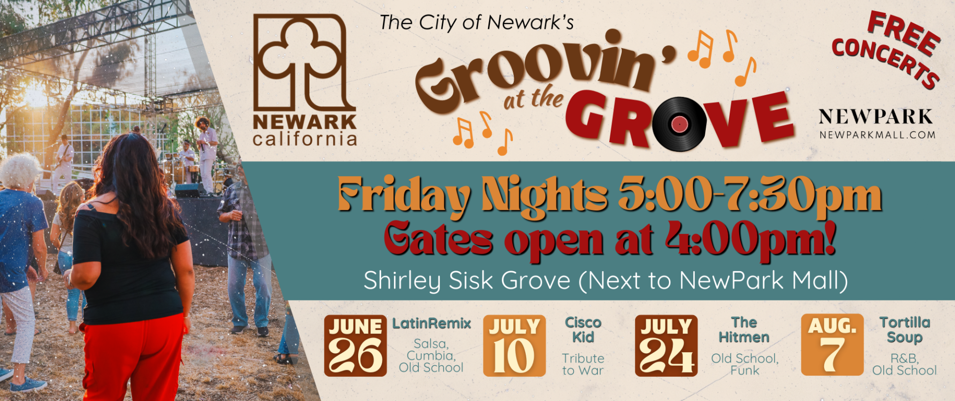 The Groovin' at the Grove series returns for summer 2026 with even more free, live music in the heart of Newark. Bring your lawn chairs, rally your crew, and get ready for a season of unforgettable performances under the open sky.