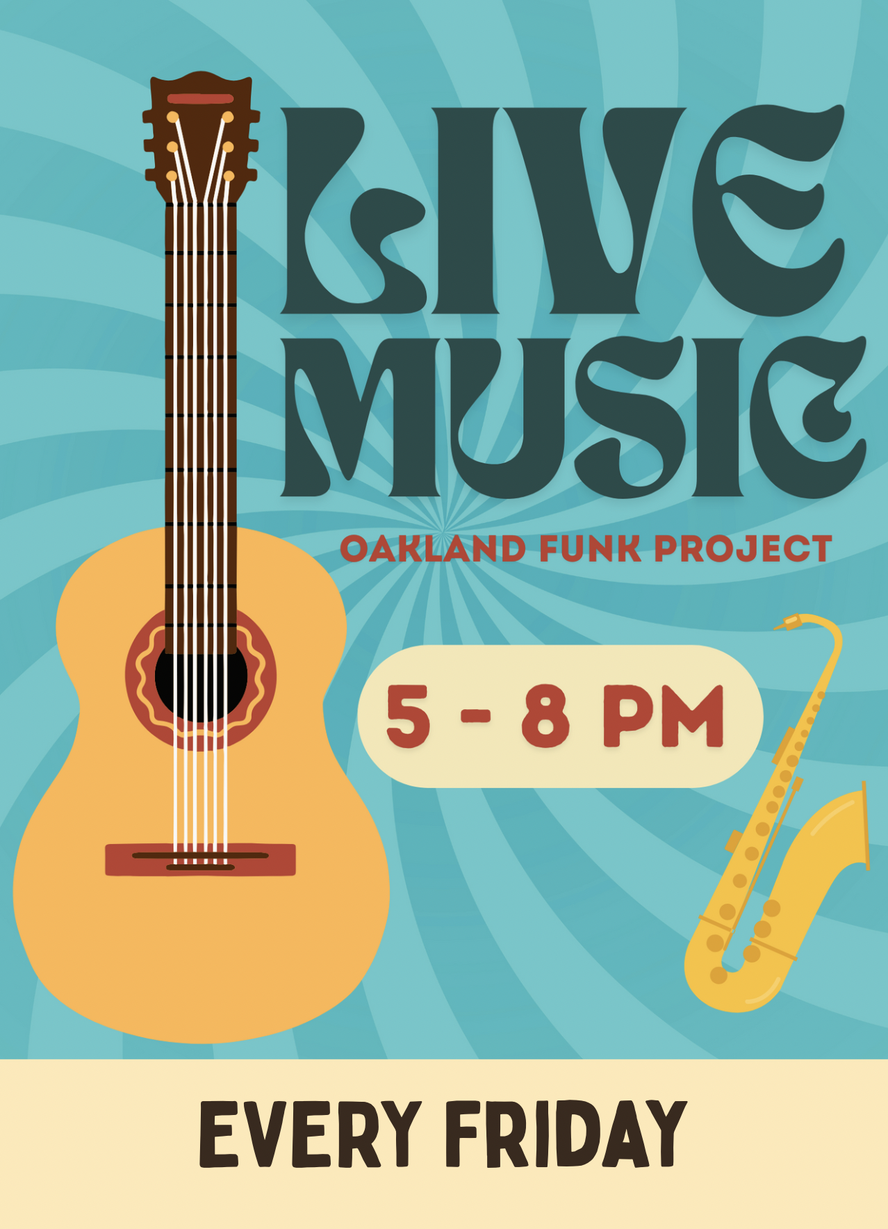 Live Music Fridays brings the groove to your weekend with Bay Area and Oakland-based jazz, funk, and soul artists performing live every Friday from 5 PM to 8 PM.