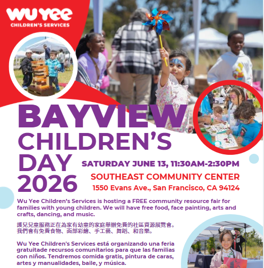 Wu Yee Children's Services is hosting a FREE community resource fair for families with young children. We will have free food, face painting, arts and crafts, dancing, and music.