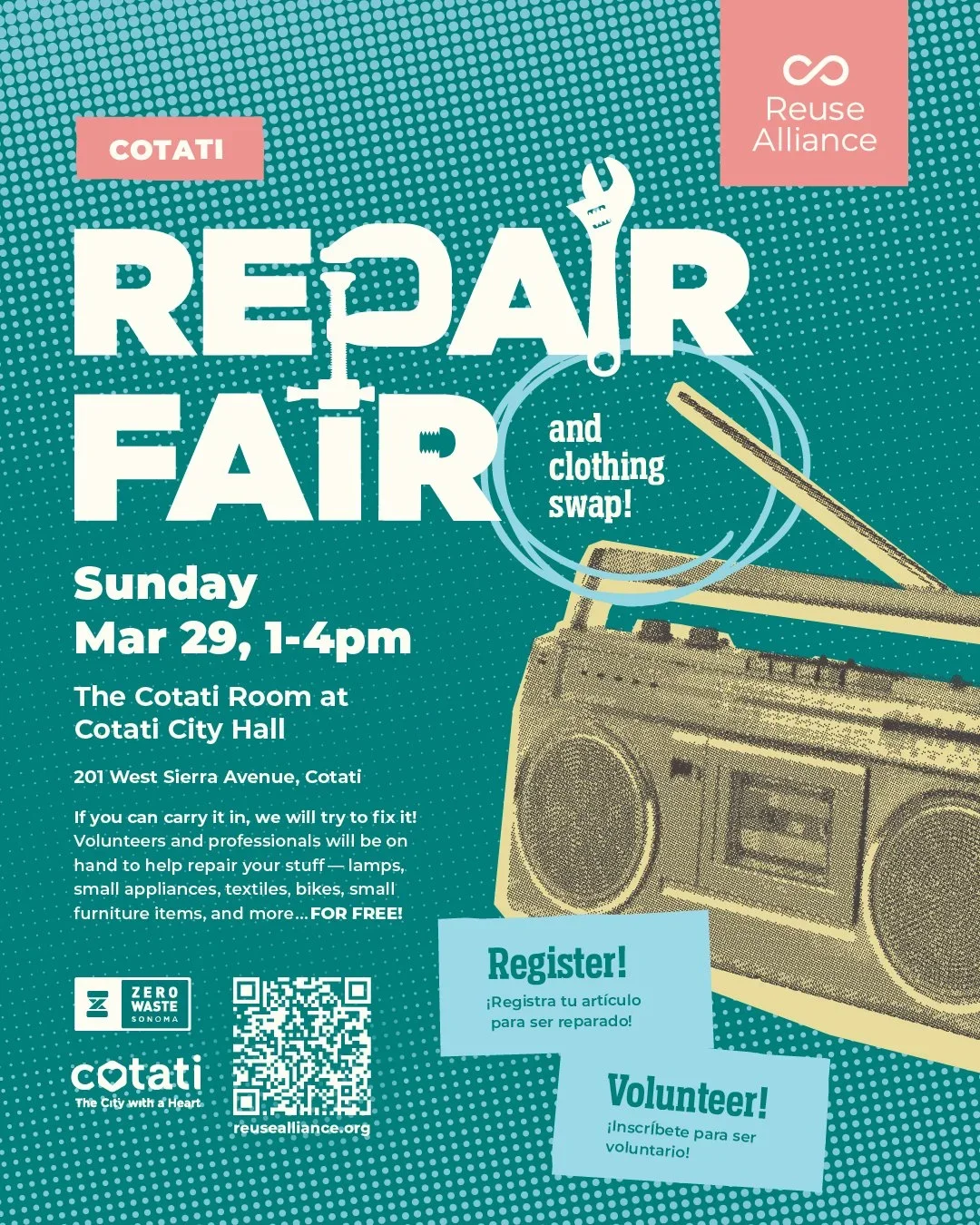 If you’d like to bring an item to repair, please register the item here . (Pre-registering allows us to prepare for your item!)