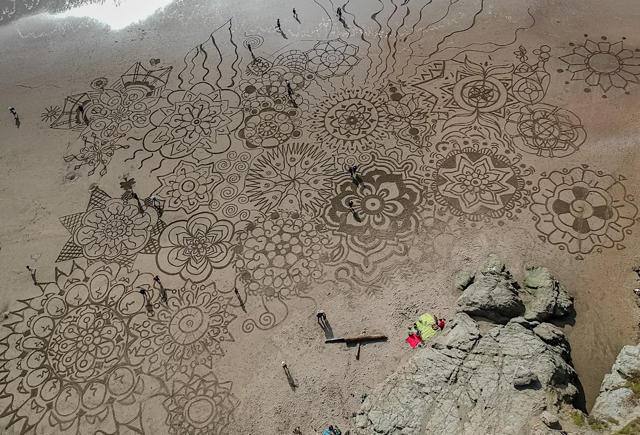 In this gathering we will connect to ourselves, to the beach and to our fellow creators as we engage various activities learning about the tools and techniques of massive art-making, culminating in an original artwork guided by the group process. We end with aerial photos for lasting memories.