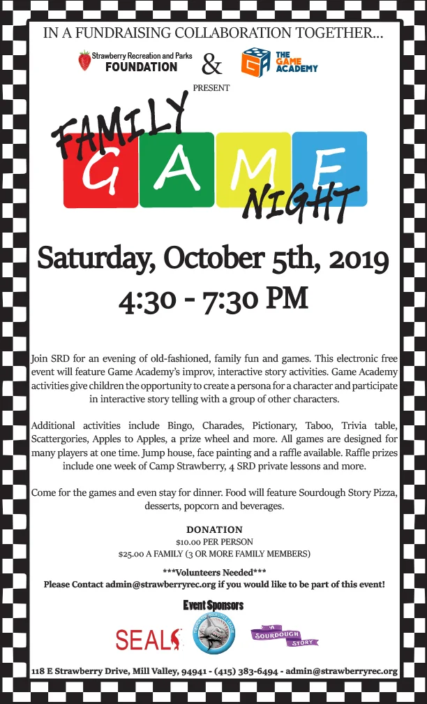 Join SRD for an evening of old-fashioned, family fun and games. This electronic free event will feature Game Academy’s improv, interactive story activities. Game Academy activities give children the opportunity to create a persona for a character and participate in interactive story telling with a group of other characters.