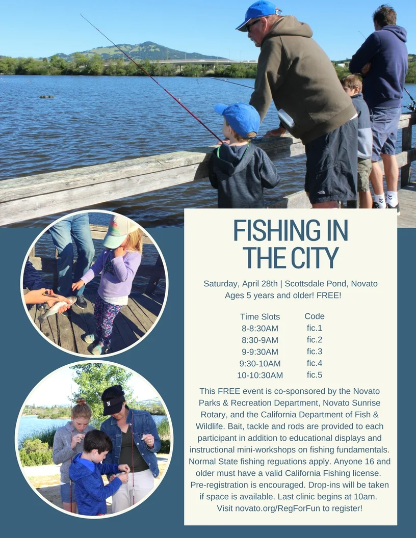 This FREE event is cosponsored by the Novato Parks & Recreation Department, Novato Sunrise Rotary, and the California Department of Fish & Wildlife.