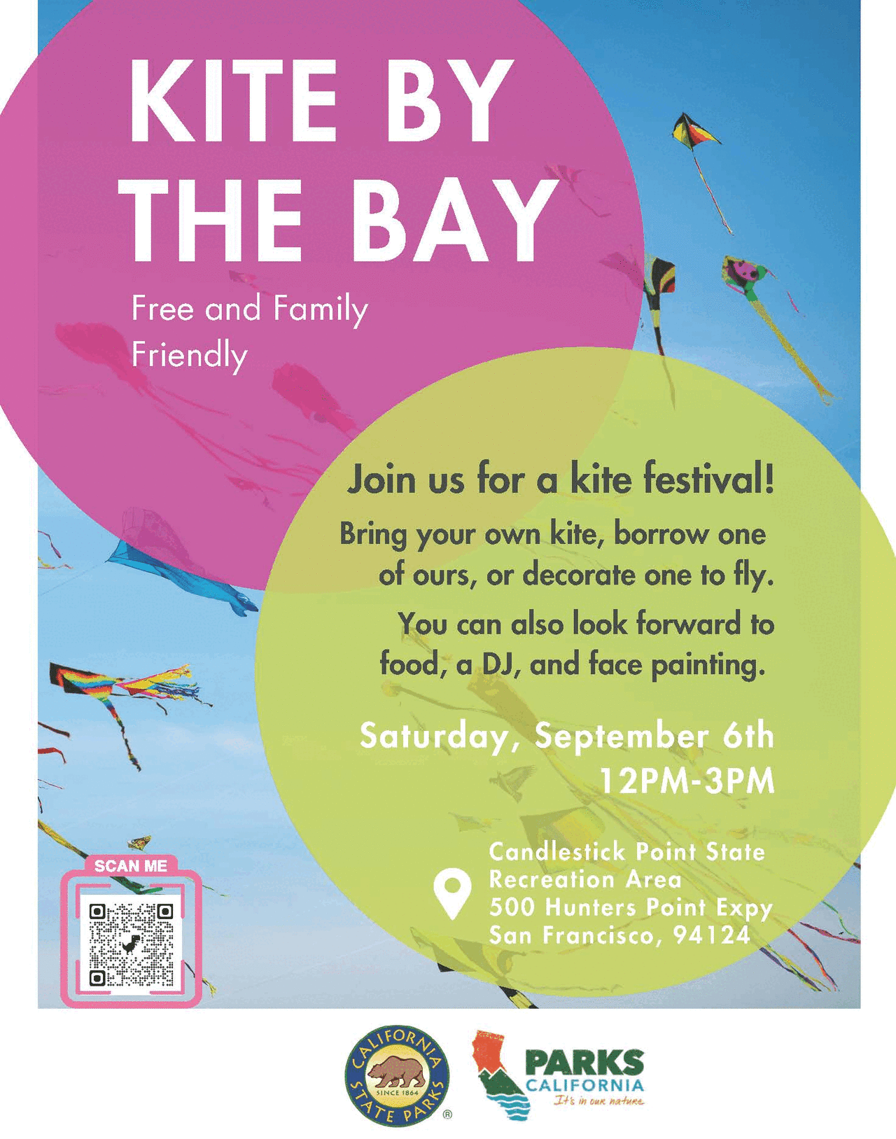 Head to the Candlestick Point State Recreation Area (500 Hunters Point Expressway) for Kite by the Bay, a free, family-friendly event on Saturday, September 6 from noon to 3 p.m.