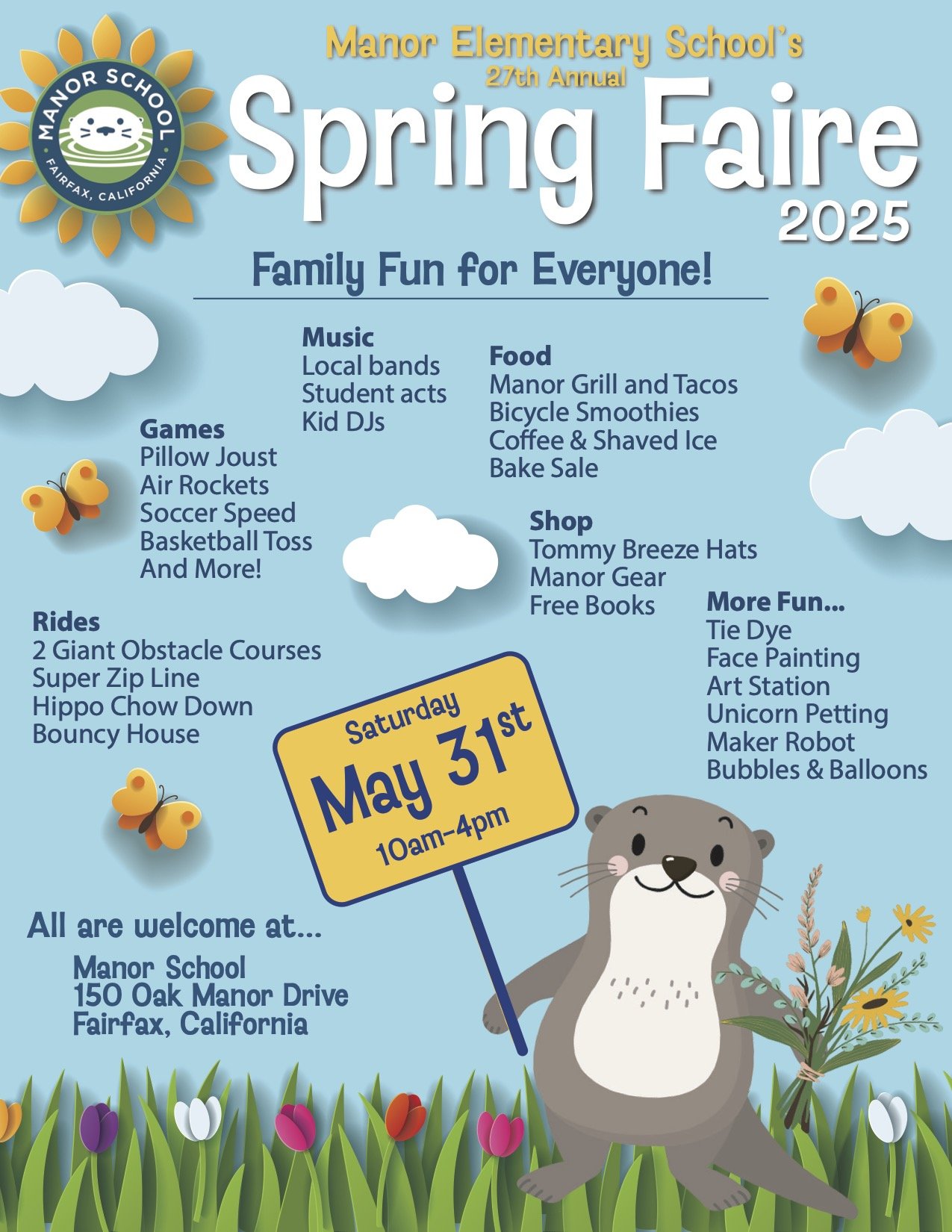 The Manor Spring Faire is a family fun celebration of rides, games, food, music, crafts and more! This festival is Manor PTA’s largest event, attracting over 1,000 people from the wider Fairfax community. Come and enjoy family fun for everyone!
