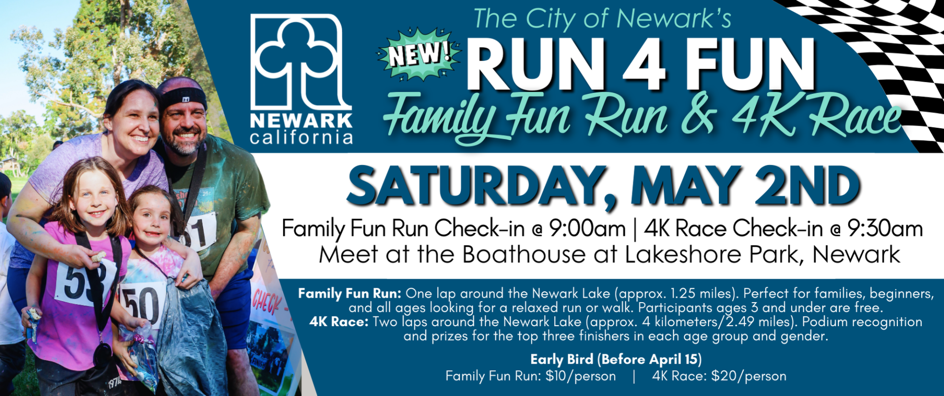 4K Race: Two laps around the Newark Lake (approx. 4 kilometers/ 2.49 miles). Podium recognition and prizes for the top three finishers in each age group and gender.