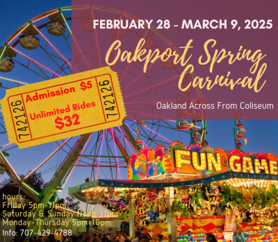 Butler Amusements Carnival will be coming to Oakland at the end of this month! We'll have over 25 rides, carnival games and food vendors.