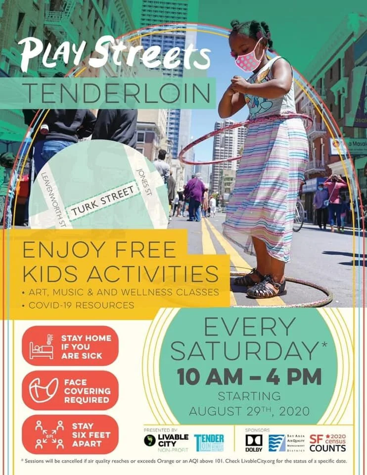 Play Streets is produced by Livable City and the TLCBD, in collaboration with the Tenderloin Museum, CounterPulse, the Boys and Girls Club, and other community organizations.