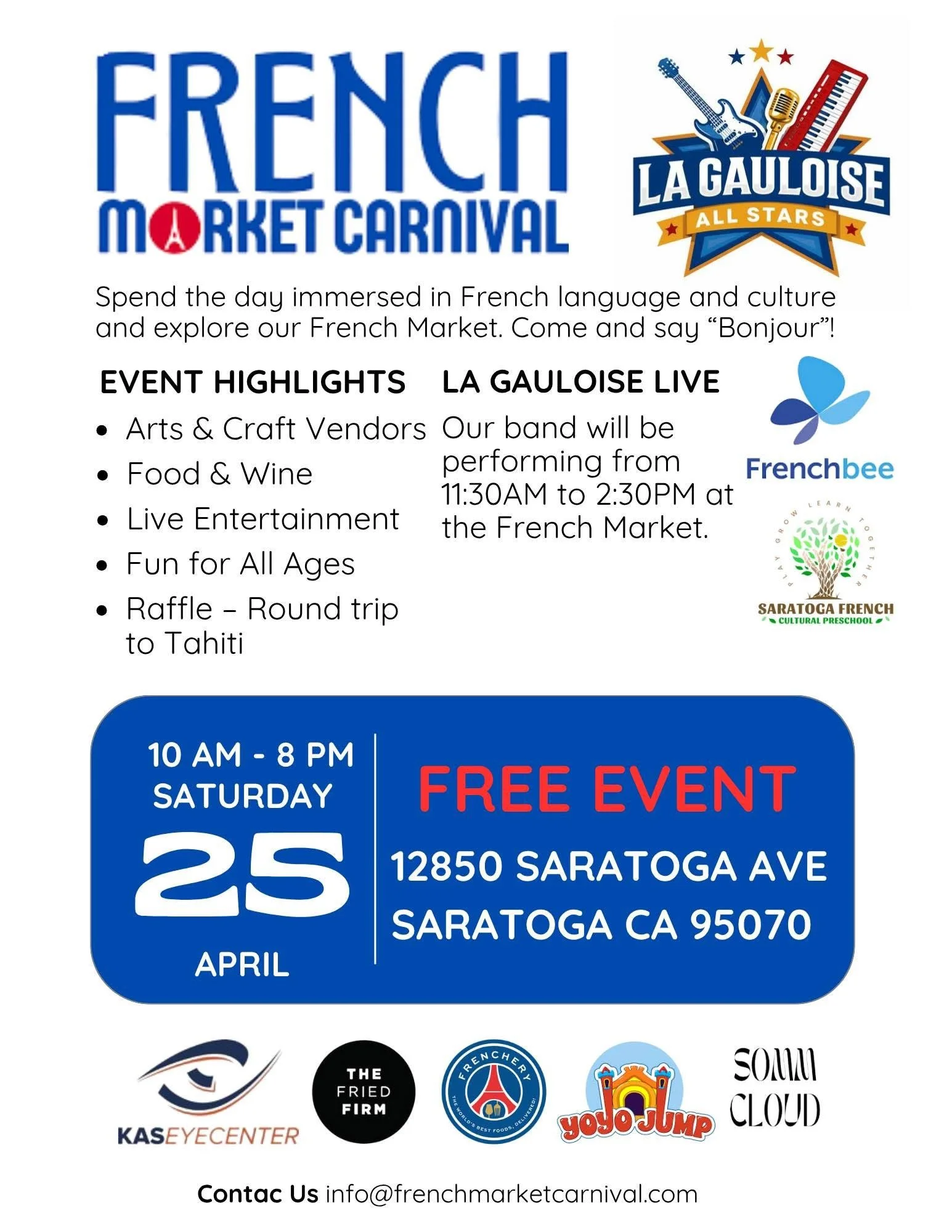 Step into a world of whimsy and delight as we transform Saratoga into a bustling French marketplace! Entry is FREE for all, so gather your friends and family for a weekend filled with fun and festivities.