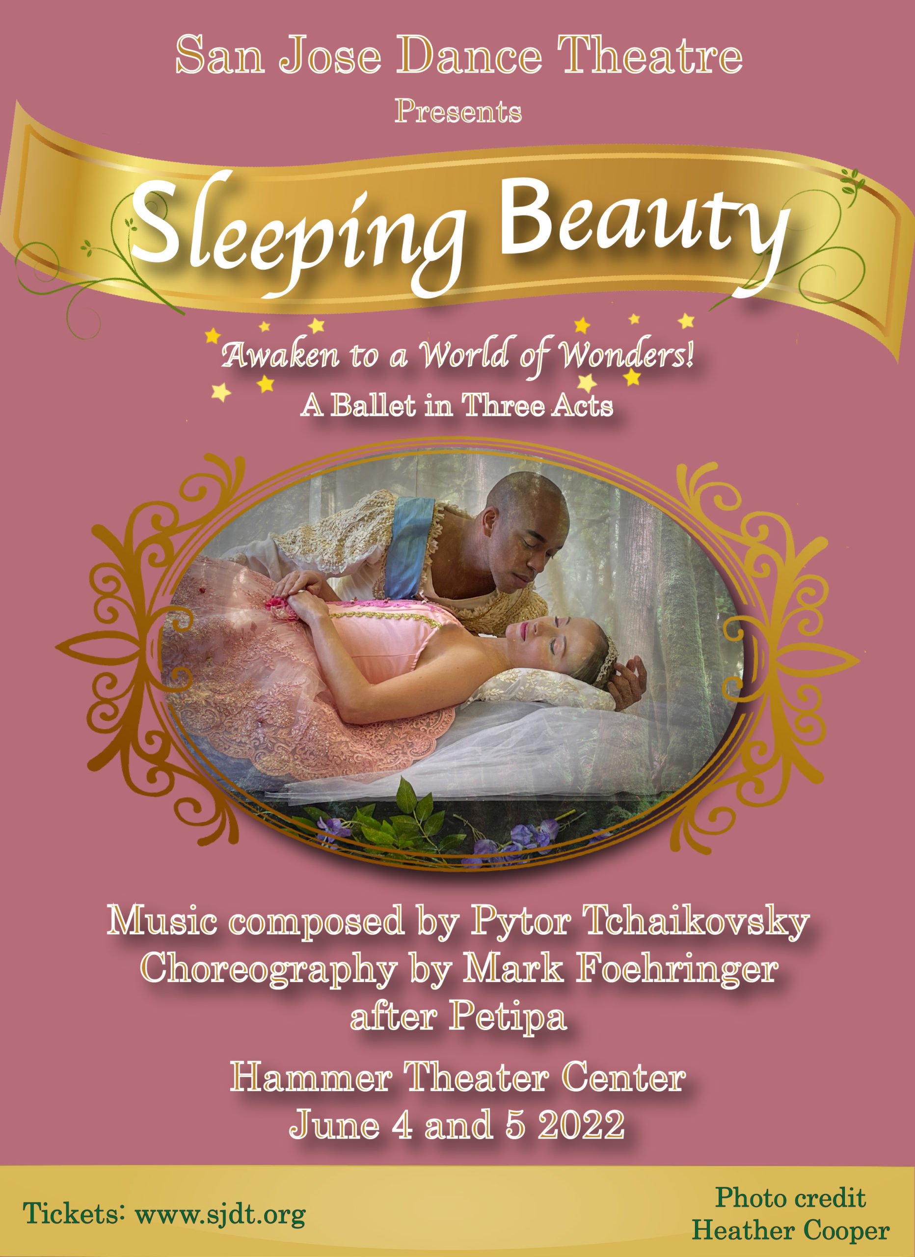 San Jose Dance Theatre brings the story of Sleeping Beauty to life at the Hammer Theatre Center. The beautiful Princess Aurora is cursed by the evil Carabosse to prick her finger on her 16th birthday and die. Luckily, the powerful Lilac Fairy intervenes and places the kingdom into a one hundred year slumber saving young Aurora. One of ballet’s most cherished and favorite stories! Don’t miss out on seeing San Jose Dance Theatre’s Sleeping Beauty on stage in June of 2022.