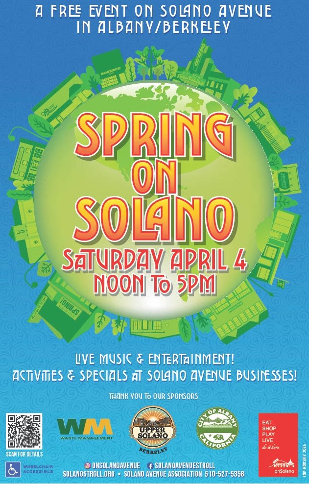 Our seasonal programs feature live music, entertainment, activities, and specials offered by businesses along Solano Avenue. These events span the one-mile stretch from The Alameda to San Pablo Avenue, bridging Berkeley and Albany. Additionally, we invite a limited number of outside vendors including non-profit agencies, artisans, jewelers, and makers. And of course we always include the uber-popular Kids Fun Zone that always draws a crowd.