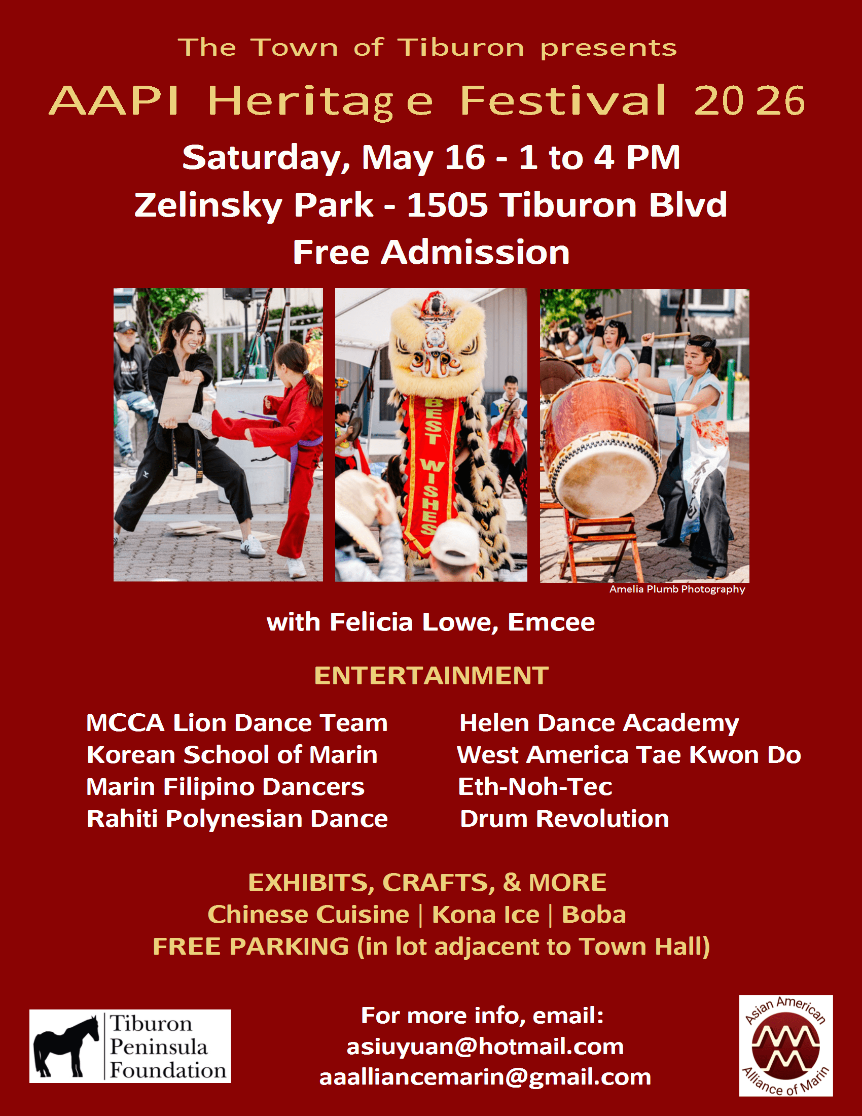 Welcome to the Tiburon AAPI Heritage Festival! Join us at Zelinsky Park for a day filled with cultural celebrations, delicious food, traditional performances, and so much more. Immerse yourself in the rich heritage of the Asian American and Pacific Islander communities through art, music, and dance.
