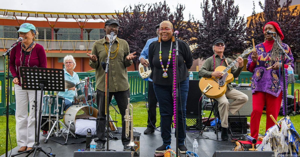 Led by New Orleans-native Michelle Jacques, a soul-steeped vocalist with a big, bold voice, Chelle! & Friends bring to the Gardens a family-friendly taste of the Crescent City, the cradle of so much essential American music. Chelle! & Friends is made up of some of the most distinguished and accomplished musicians in the San Francisco Bay Area, including Rhonda Crane and Bryan Dyer on vocals and percussion, Donna Viscuso on saxophone, Eric Swinderman on guitar, Kevin Scott on bass and Michaelle Goerlitz on drums. Chelle! & Friends deliver music that’s steeped in the cadences of gospel and animated by the earthy grooves of R&B and the Caribbean. Join the party, move your feet, sing along and join a Mardi Gras parade!